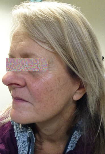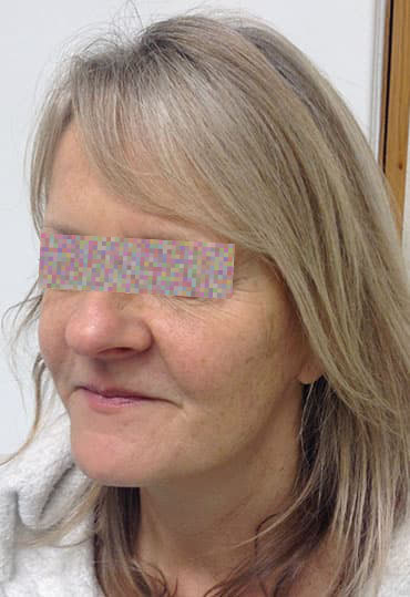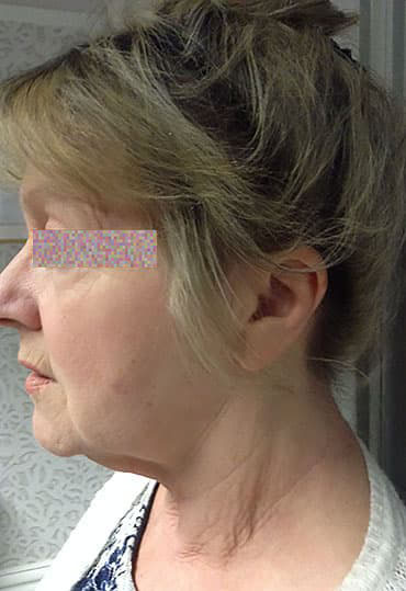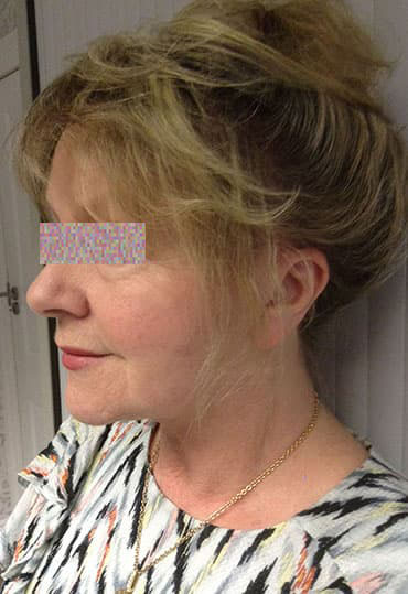 Here our female patient found the laser resurfacing treatment to the face most rewarding. With reduced appearances of fine lines and wrinkles, smooth, soft skin and a refreshed appearance.